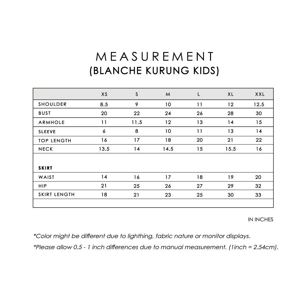 BLANCHE KURUNG KIDS crafted from embroidered organdy with full lining, features a square neckline with front yoke, layered organdy with delicate beading, transparent organdy sleeves with embroidered edges, and back zipper, paired with a poly cotton blend skirt with halfway elastic waistband, side zipper and side pleats on both left and right.