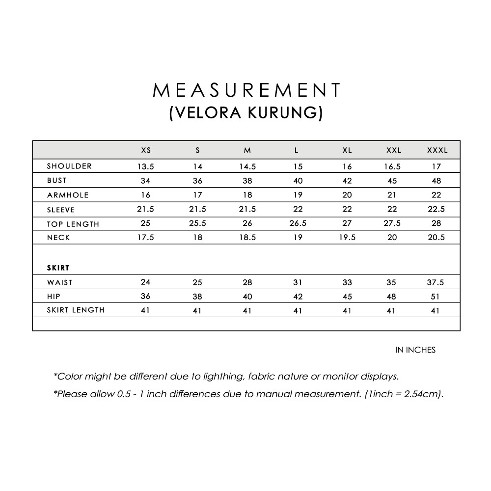 VELORA KURUNG crafted from embroidered organdy with poly-blend and full lining, features a square neckline with border lace, border lace hem on top and sleeves, beaded embellishment, layered transparent organdy sleeves, and back zipper, paired with a matching embroidered organdy mermaid skirt with full lining, side zipper, and halfway elastic waistband.